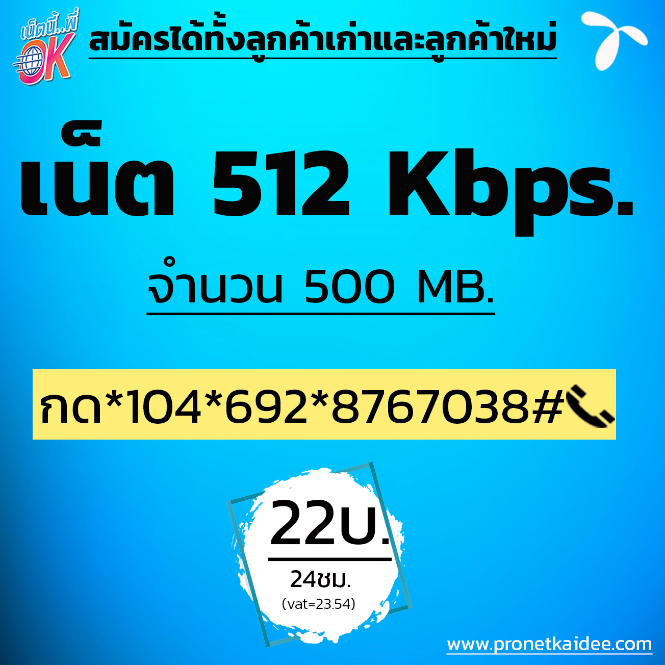 โปรเน็ตดีแทค 512 kbps ปริมาณ 7.5 GB.