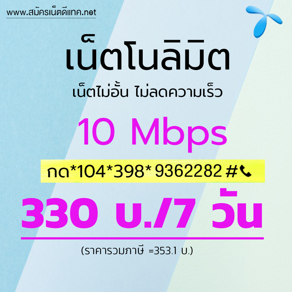 กดสมัครโปรเน็ตดีแทค 10 mbps ปริมาณ 33 GB.