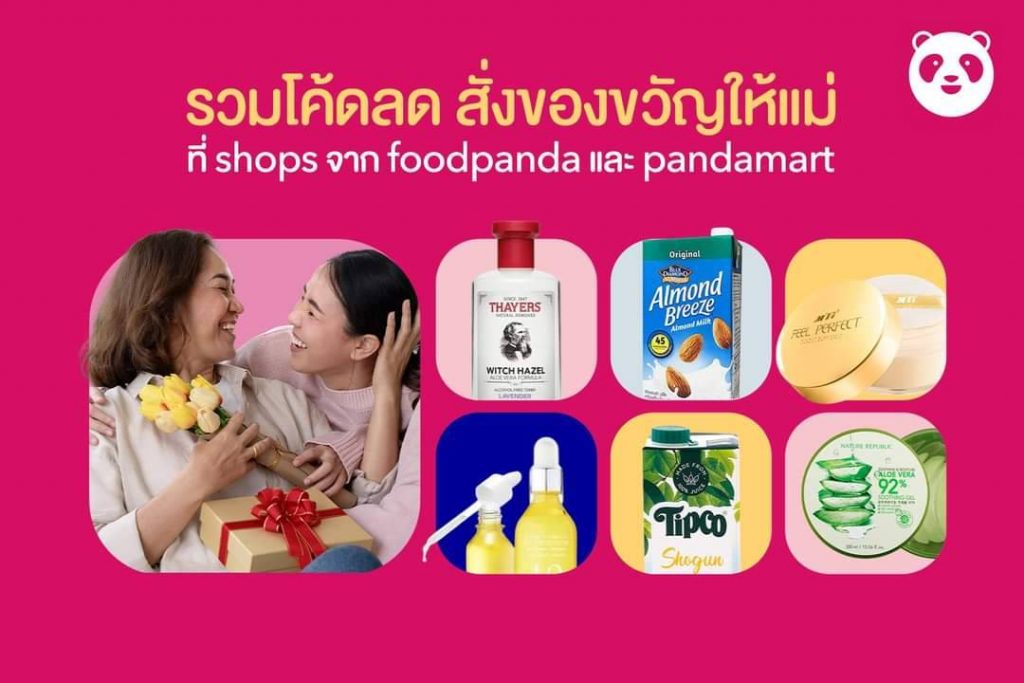 ขณะที่ฟู้ดดีลิเวอรี่ “ฟู้ดแพนด้า” แจกโค้ดส่วนลดเพียบให้ลูก ๆ ได้ซื้อของขวัญวันแม่แบบส่งเร็วทันใจ อาทิ โค้ดลด 25% ในแพนด้ามาร์ท ดีลสินค้าส่งไวภายใน 25 นาที พร้อมส่วนลดสูงสุด 40% จาก shops ของฟู้ดแพนด้า